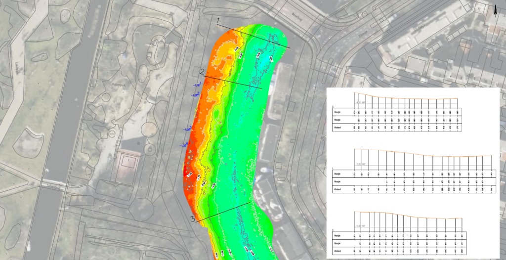 Met geavanceerde sonar zoals de Multibeam Echo Sounder (MBES) brengen we de waterbodem vóór de kade nauwkeurig in kaart en reconstrueren we die tot 3D-modellen. Bij een totaalinspectie integreren we de multibeamdata in één model. Na verwerking leveren we een 3D-puntenwolk en/ of hoogtekaarten in PDF.
